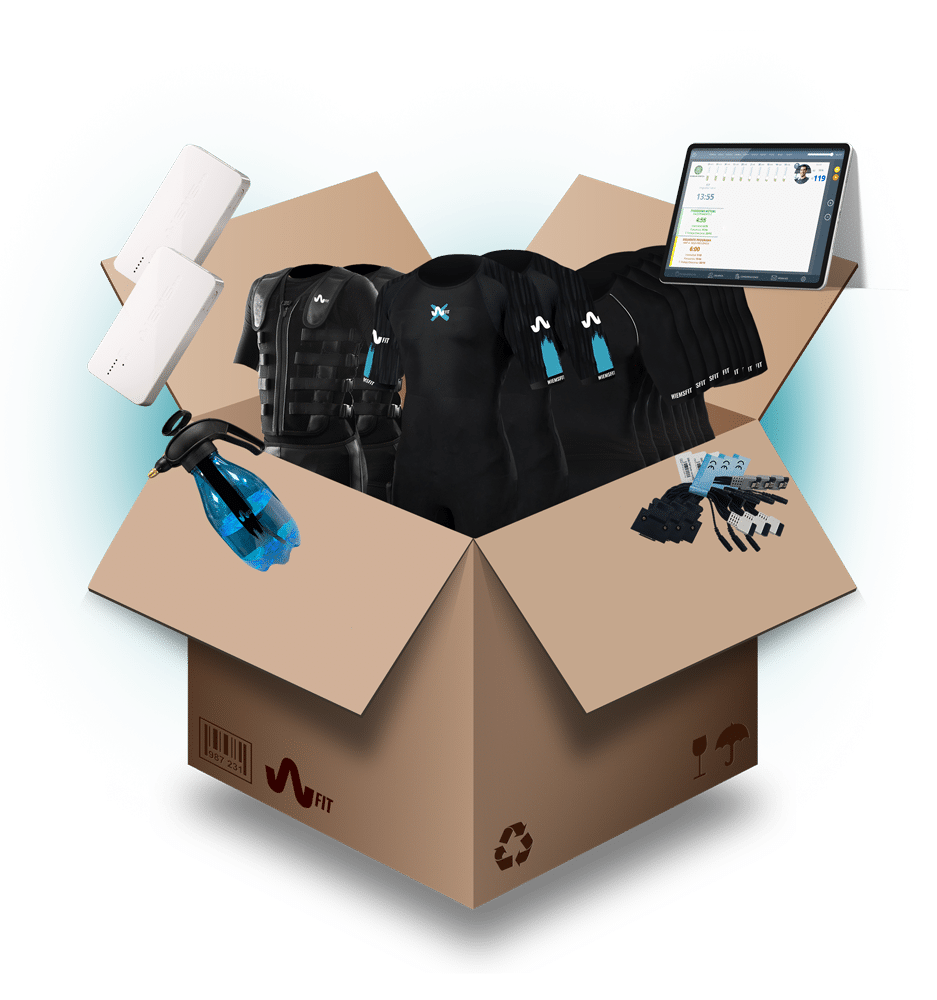 WiemsFIT by Wiemspro has developed the WB-EMS wireless device using the latest technology in electrostimulation signal generation, conditioning and processing. This multigenerator system allows you to create controlled and safe pulses for all types of waves, with greater efficiency and lower energy consumption. In addition, thanks to the latest in WB-EMS Technology, with the electrostimulation bio suit we can increase muscle contraction in the main muscle groups during training.